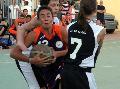 LA PRIMA SEMIFINALE E' COMBATTUTA E TIRATA. PARTE A RAZZO PANDOLFI CON DUE CANESTRI DI FEDERICA IANNUCCI E UNA INSOLITA TRIPLA DEL LUNGHISSIMO DI GIACOMO: 9-2. STUDIO NON SI FA INITMORIRE, RICUCE PIAN PIANO CON UN COMBATTIVO BONESSIO (9-8). SI FILA IN EQUILIBRIO FINO A META' GARA, MA STUDIO MUTUI RIESCE A PRENDERE UNA MANCIATA DI PUNTI (DA 3 A 6 MASSIMO) CHE NON MOLLERA' PIU'. PANDOLFI NON MOLLA, LOTTA MA NELL'ULTIMA FRAZIONE CROLLA TRITURATA DA MAGGIOR TASSO FISICO E TECNICO DI STUDIO. LA PRIMA FINALISTA E' STUDIO (SESTA FINALE IN 9 ANNI) ORA ATTENDE LA VINCENTE DI BARAONDA MAMMUT-TURI RIZZO ELLEBI TRAVEL